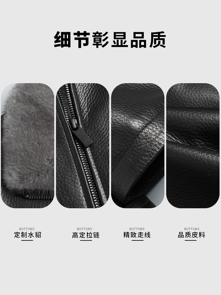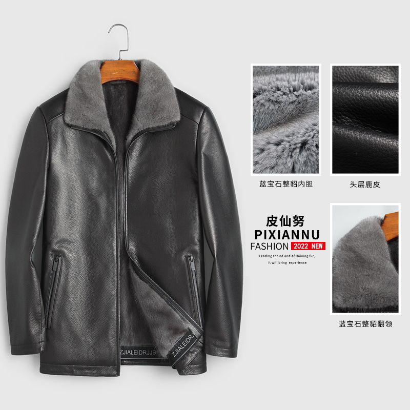 Henning Genuine Leather Leather Clothing Men's Water Mink Liner Imported Deer Leather Turnover Jacket Whole Mink Fur Integrated Coat-Taobao