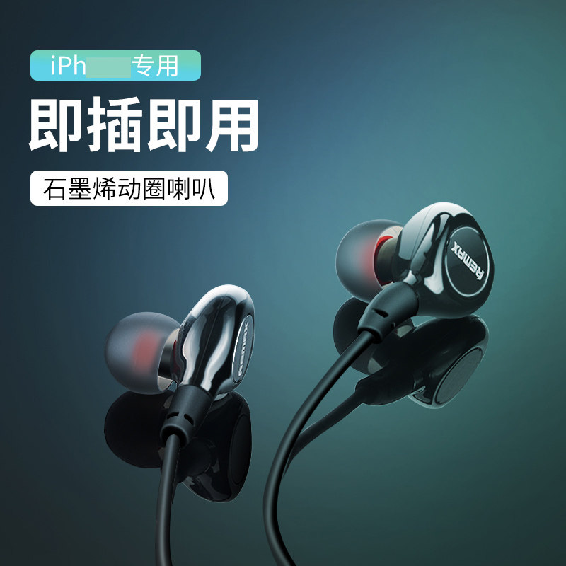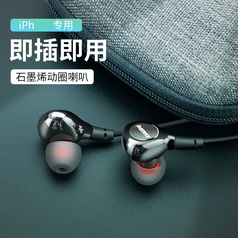 REMAX ping fruit 12 11pro Xs Max 7 8Plus XR sports ear hanging wired headphones Graphene moving ring horn wire control mobile phone call noise reduction in ear sounds