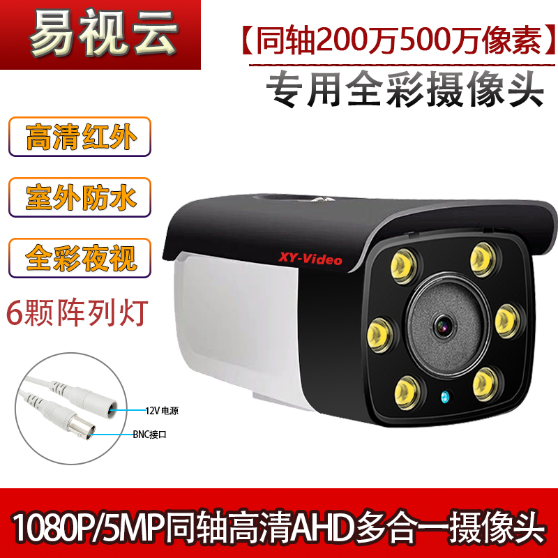 Outdoor waterproof 6 lights high power warm light full color home 2 million AHD video recorder coaxial 3D noise reduction camera
