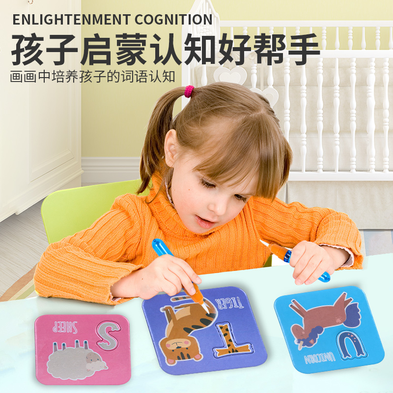 Children's puzzle literacy cognition water painting card magical clear pen infants and young children repeatedly graffiti this early education can not be broken enlightenment