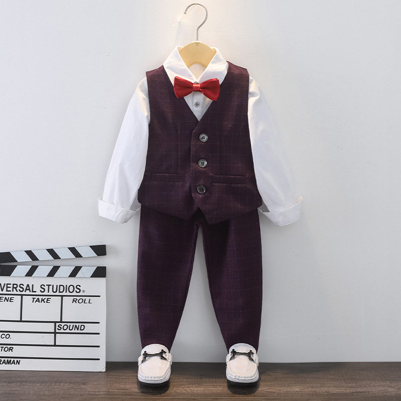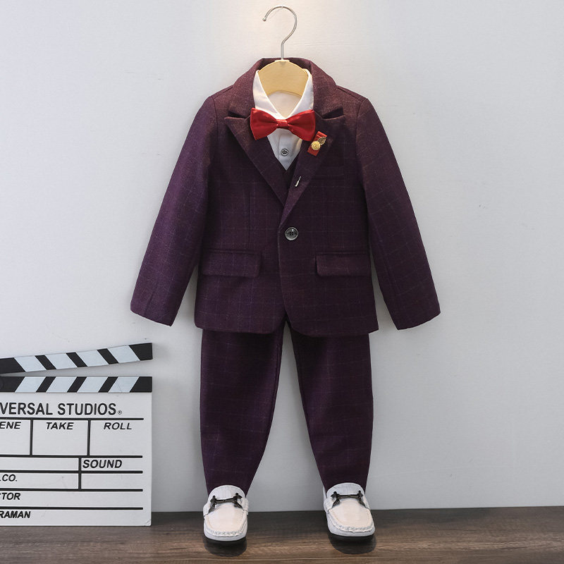 Children suits suit boy gown gown with velvet winter Inren wind suit boy wedding small chair for piano performance