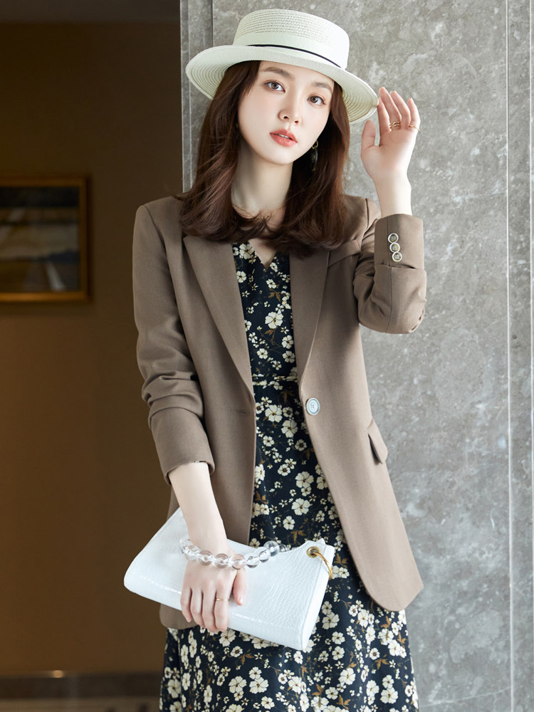 Casual small suit jacket female 2022 spring and autumn new Korean style design sense small net red fried street coffee color suit