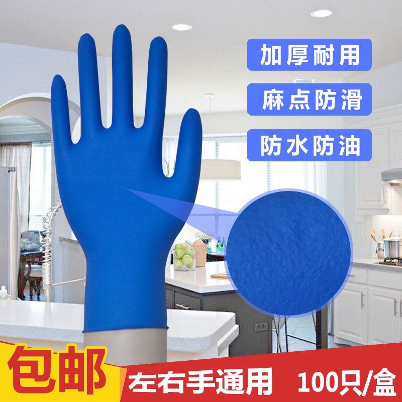 Dengsheng disposable thickened blue nitrile gloves hygienic anti-oil and acid-resistant food labor insurance latex rubber gloves - Taobao
