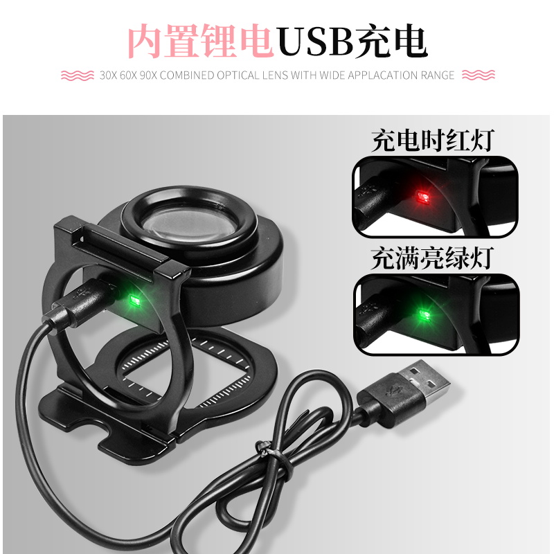 Baishitong magnifying glass identification special 50 times high-definition look at pigeon eyes purple light fluorescent wine test desktop with scale charging folding portable repair circuit board chip 60 high-power cloth mirror