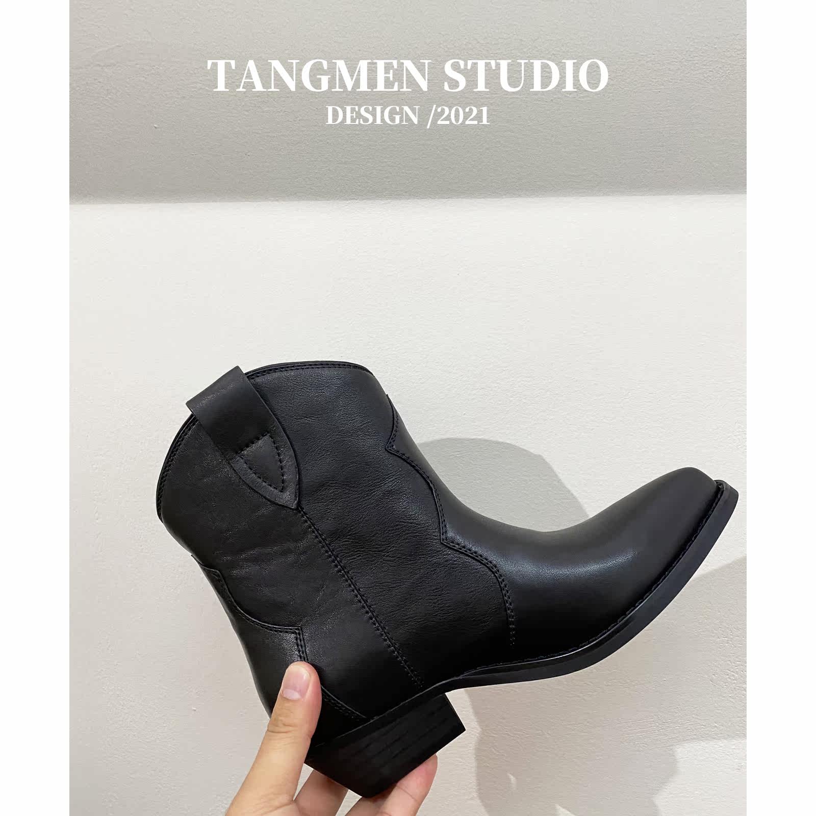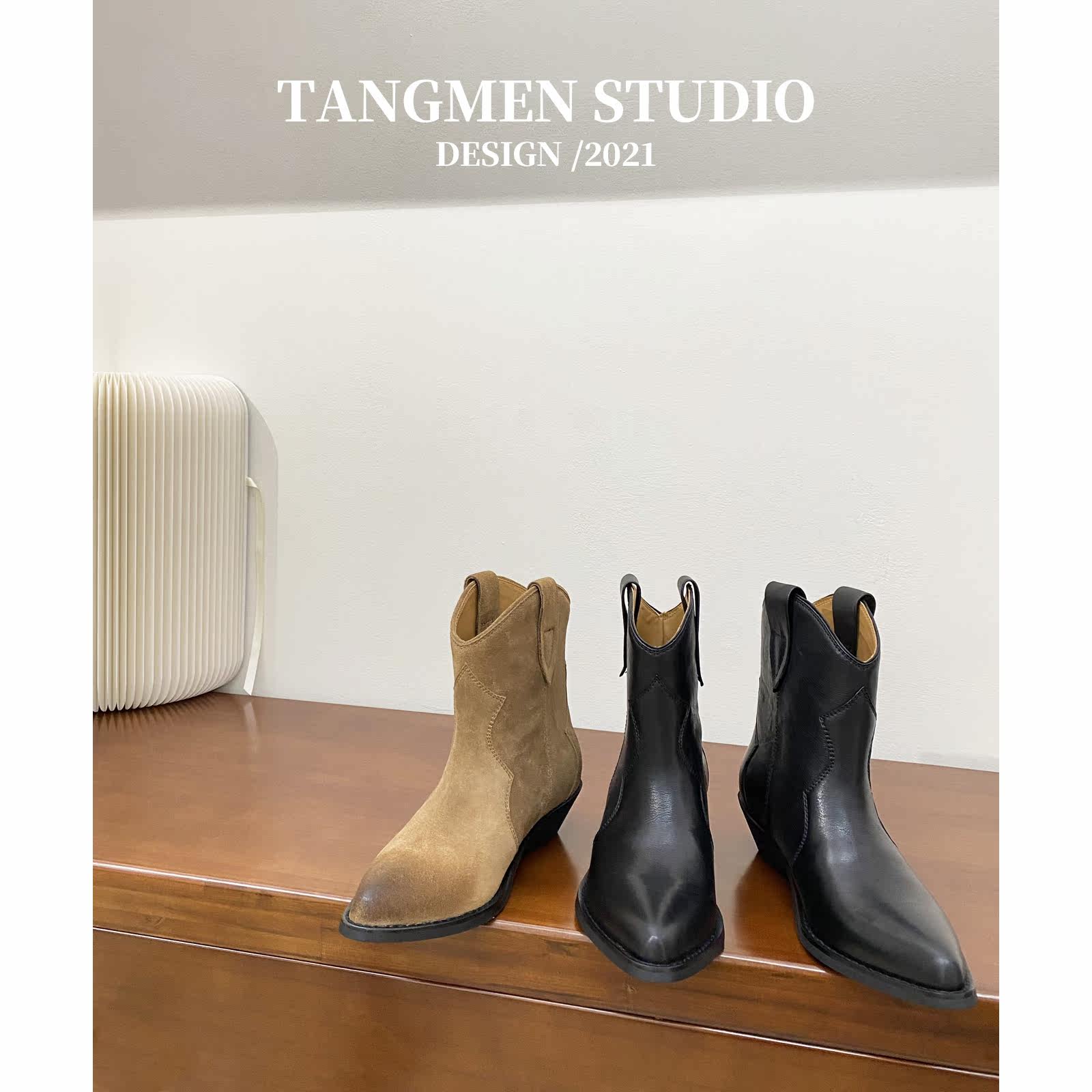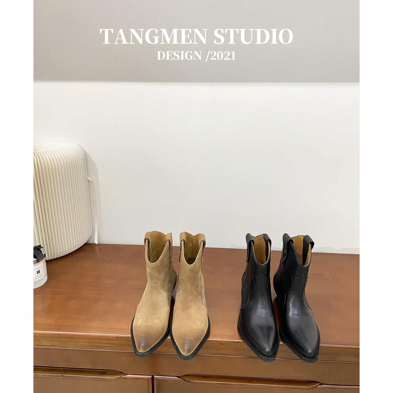Boots children 2021 new genuine leather retro pointed western denim boots coarse heel make old V mouth short boots spring autumn single boots