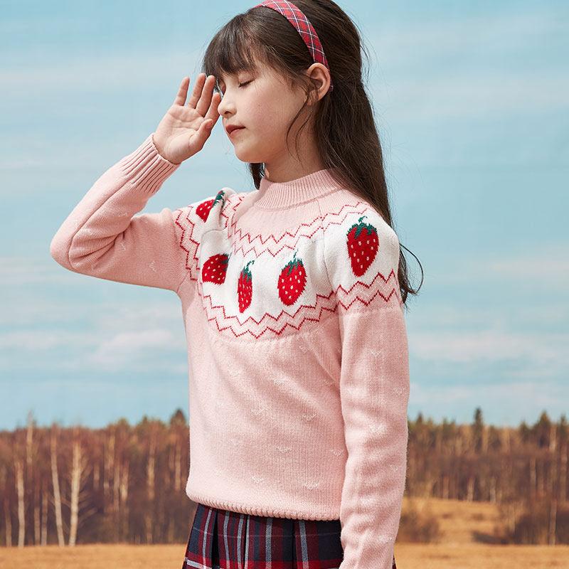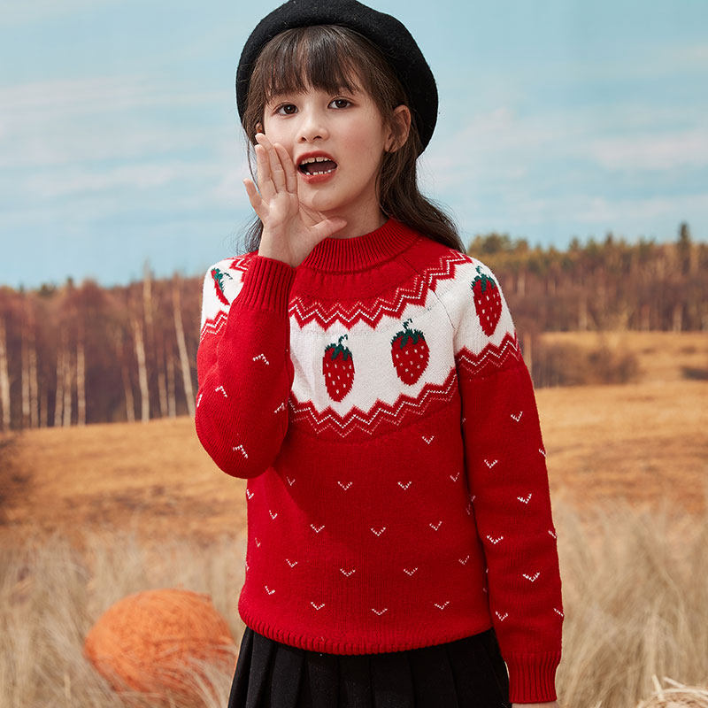 Girls pure cardigan children's sweater round neck pullover sanitary clothing children knitted base shirt autumn and winter thick coat