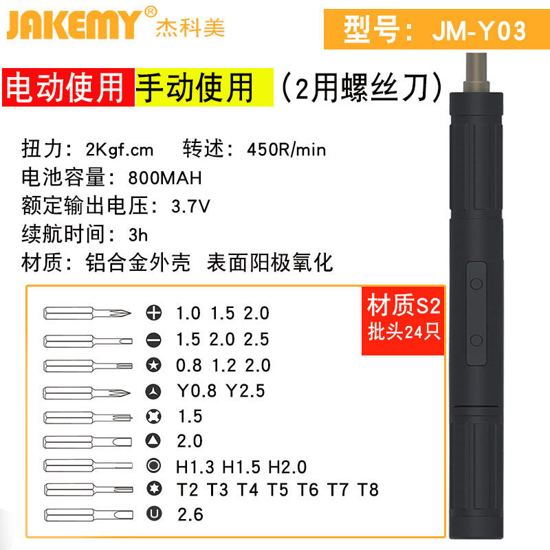JAKEMY dzekome electric screwdriver small mini torque adjustable JM-Y01Y02Y03 rechargeable electric screwdriver