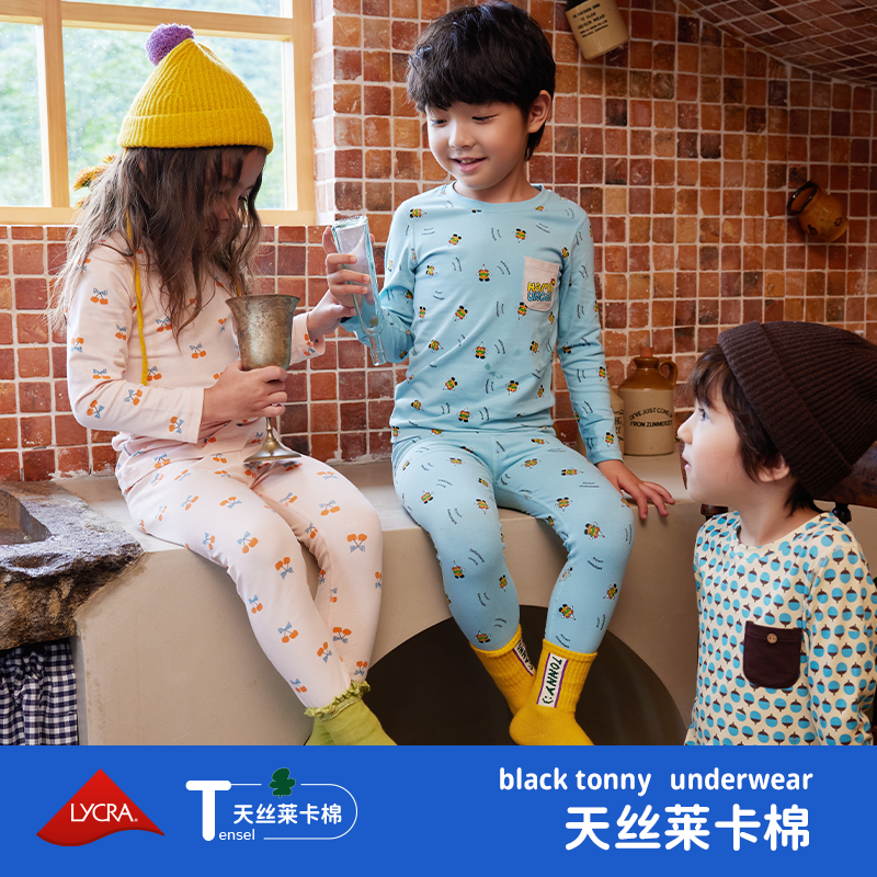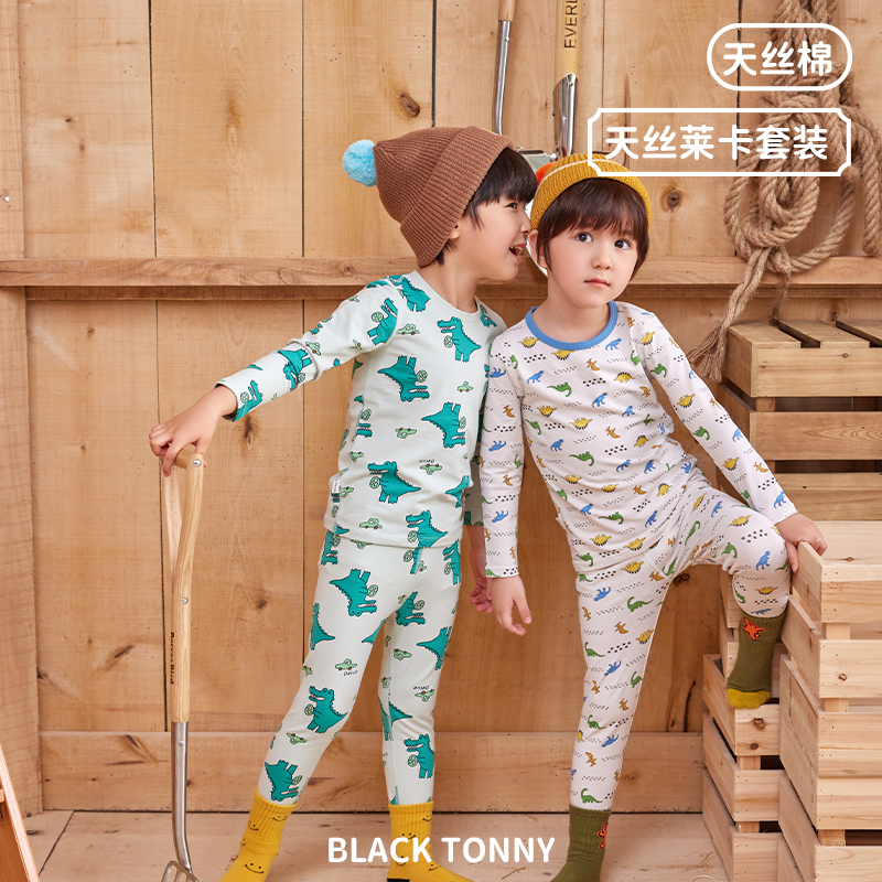 2022 Little Black Toni Tony Tencel Lycra Cotton Children's Underwear Set Boys Autumn Clothes Sanitary Pants Set Home Clothes