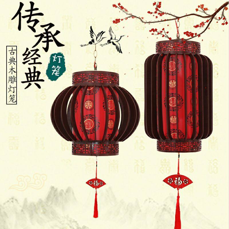 Chinese Imitation Antique Rotating Lantern Pendant Lamp China Wind Indoor Living Room Balcony Tea House Decorated Wooden Vintage Palace Lantern