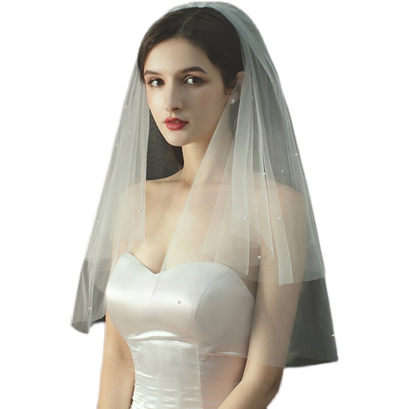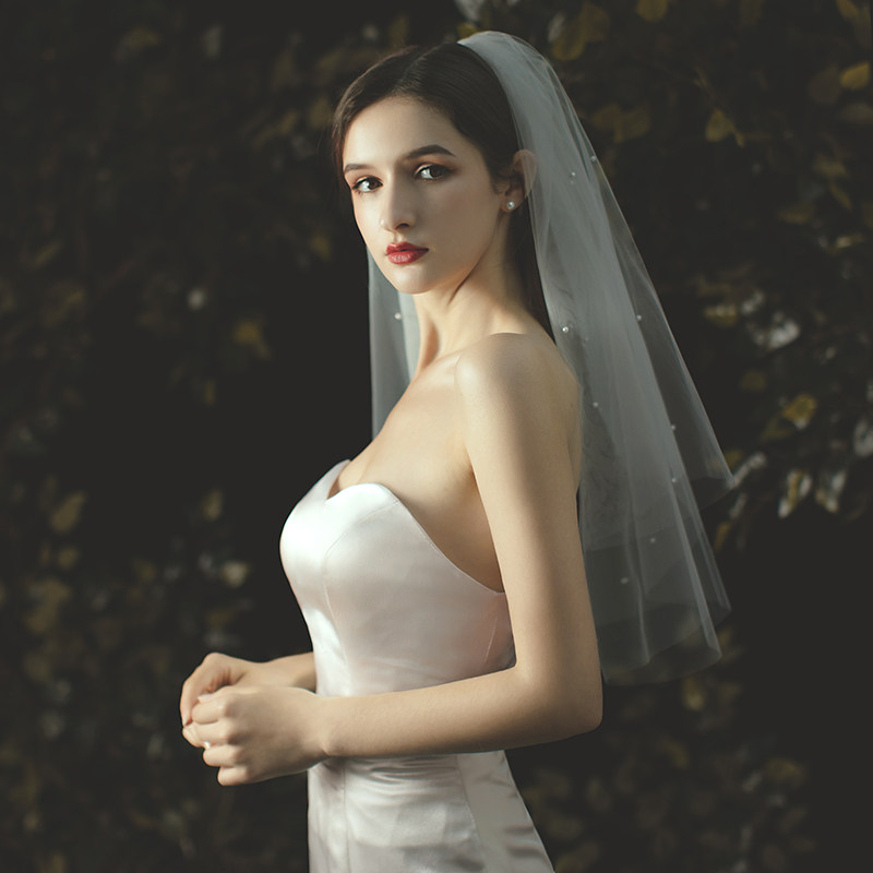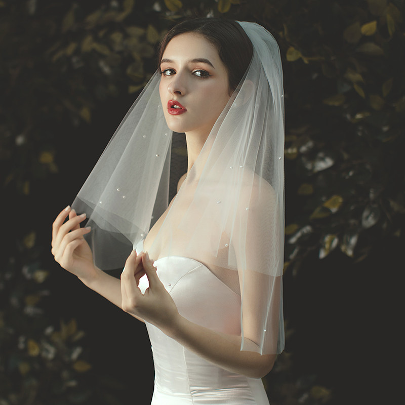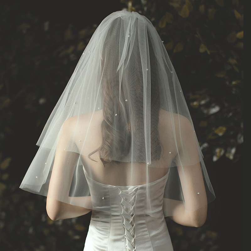 Korean-style simple pearl short section certificate multi-layer super fairy beige bridal veil 2021 new wedding head jewelry