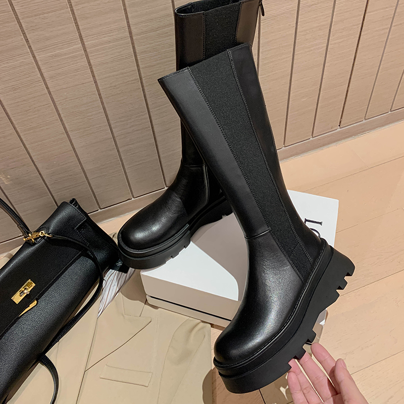 2022 autumn and winter new boots women's black thick-soled riding boots to increase the height, thin and tall elastic thick leg boots