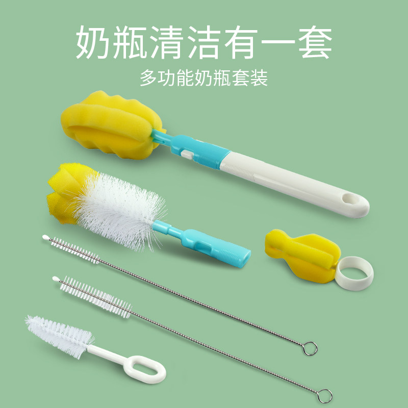 Molsif baby bottle-brushed 6 pieces of washing bottle brushed straw Nipple Brush Combined Brushed Milk Bottle Suit