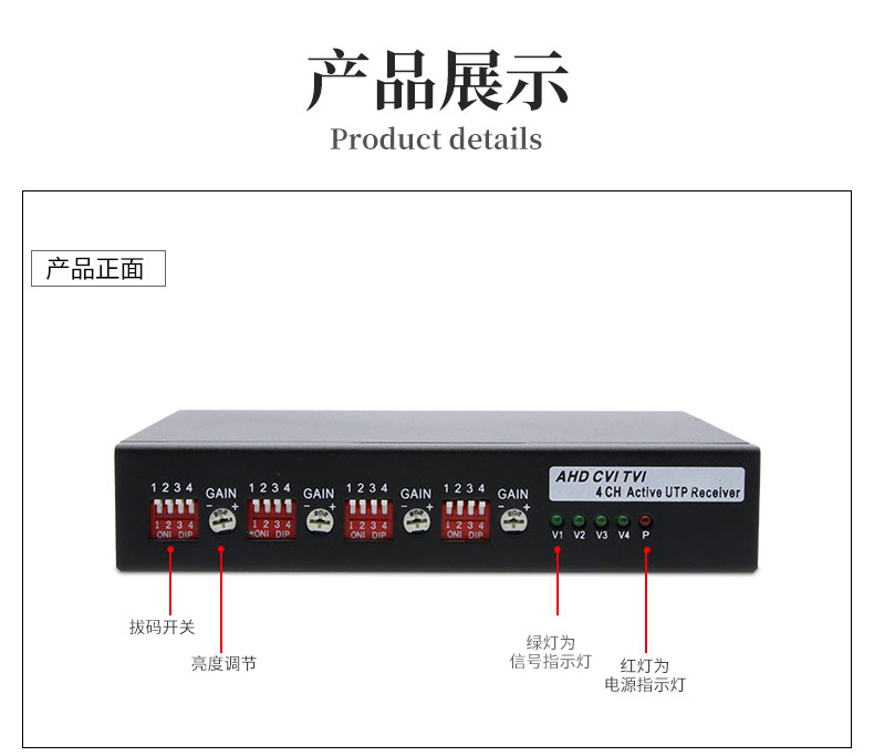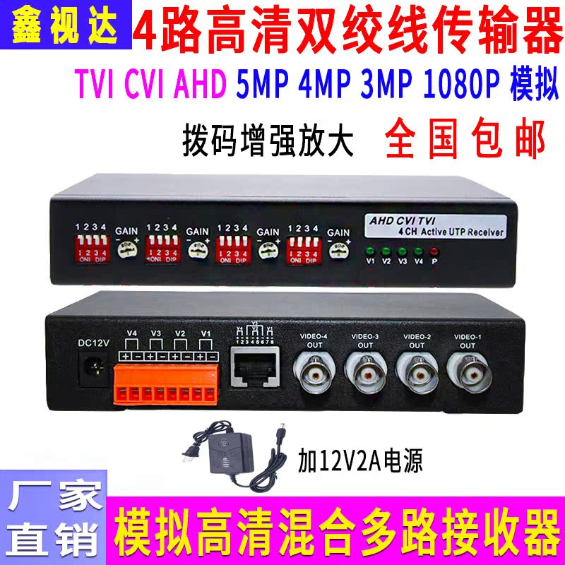 Coaxial high-definition 4-way active twisted pair transmitter surveillance camera signal TVICVI AHD enhanced amplification