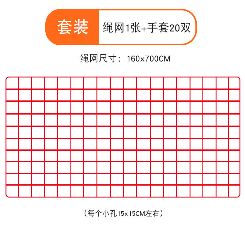 1 rope net, 20 pairs of gloves, storage bag