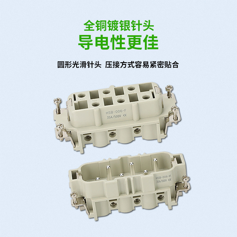Rectangular heavy-duty connector 6-core side-out top-out H16B-HSB-006-1-2 aviation plug high current 35A