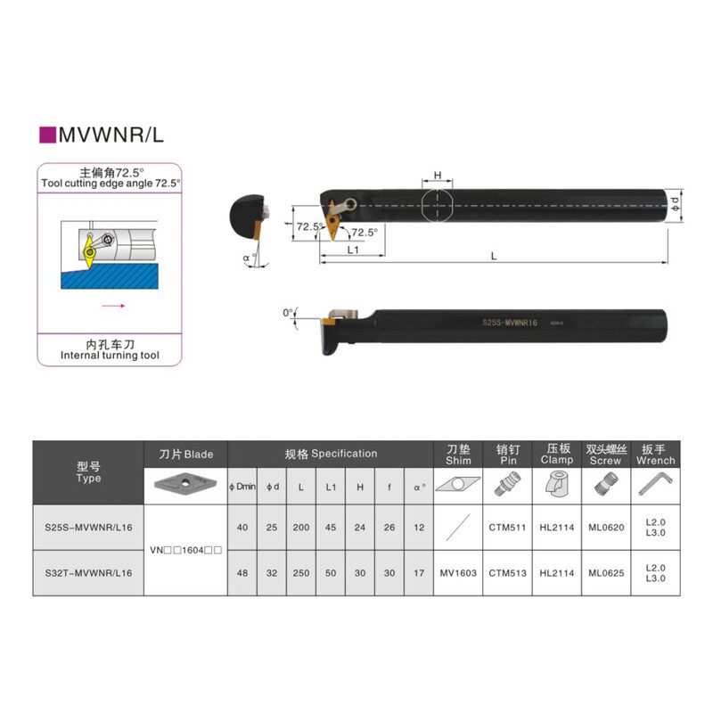 S20R-MVWNR16 positive knife S25S-MVWNR16 positive knife S32T-MVWNR16 positive knife S32T-MVWNL16 anti-knife