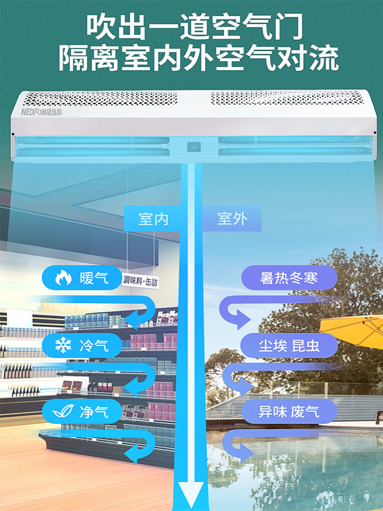 Green Island Wind Air Door Commercial Mute Air Curtain 1 2 1 5 1 1 8 2 m M Insured door head doorway wind curtain machine
