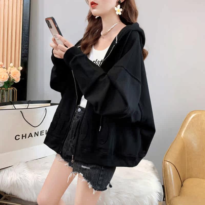 Maternity fashion thick T-shirt hooded long sleeve jacket small thin cardigan women 2021 new early autumn coat