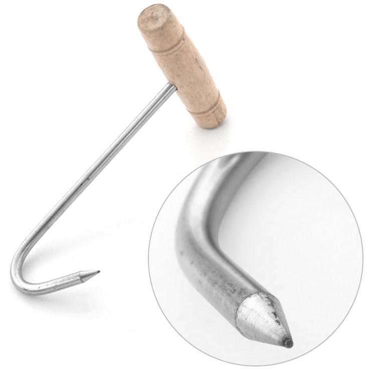 Roast Duck Oven Tool Fetch Hook Wood Handle Stainless Steel Tinted Hook Burning Goose Lifting Hook Butchered Pork Hook Tow Hook Grilled Meat Hook