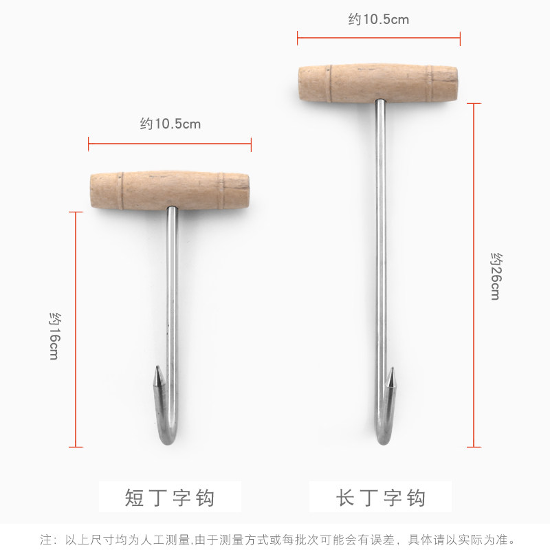 Wooden handle short Ding-shaped hook wood handle long din character hook steel handle short Ding-shaped hook steel handle long-ding character hook