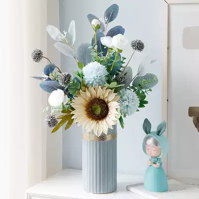 Sunflower orange bouquet (warm color decoration) sunflower blue bouquet (blue tone decoration) orange ball bouquet romantic pink rose bouquet light blue eucalyptus peony homemade