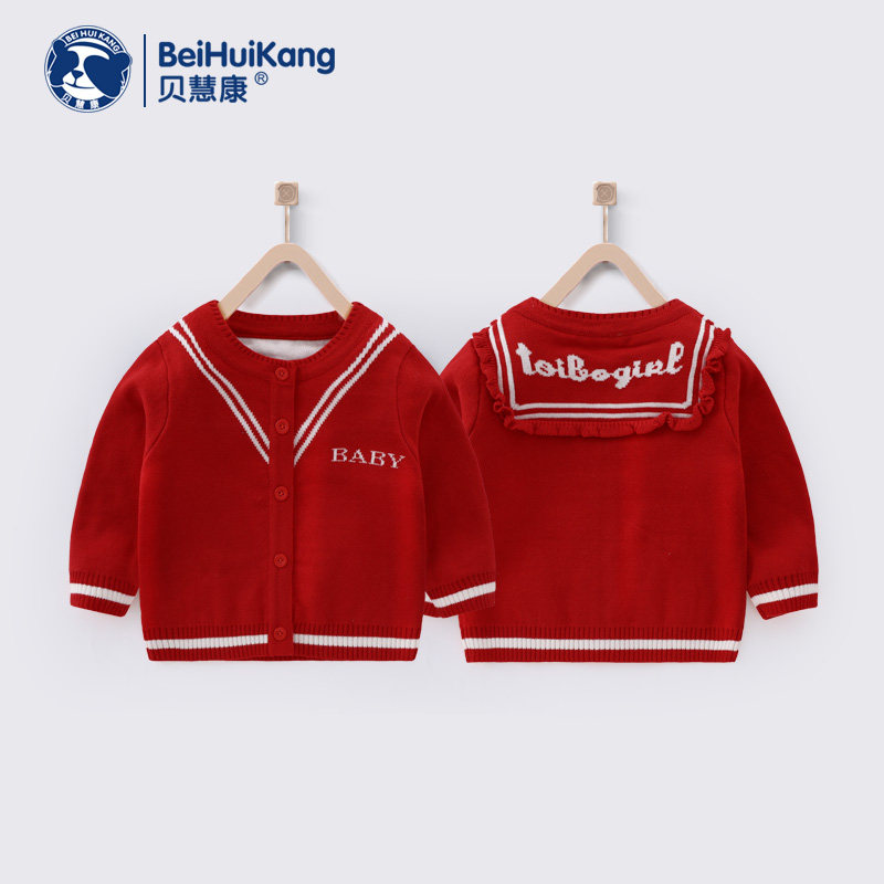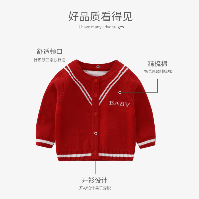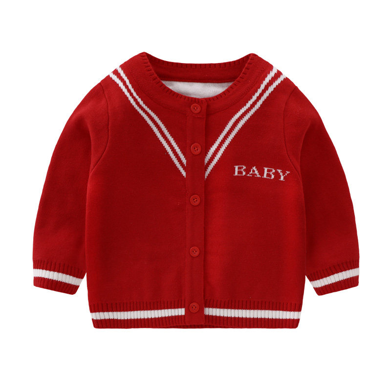 Children's sweater knitted thickened cardigan jacket children's long-sleeved top double-layer men's and women's baby clothes bottoming round neck