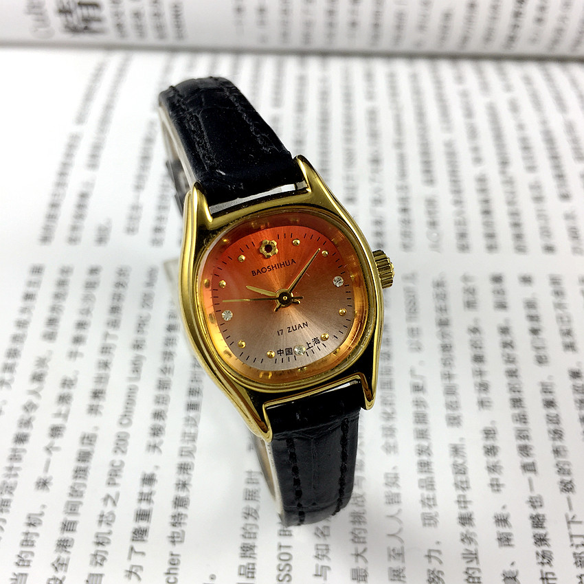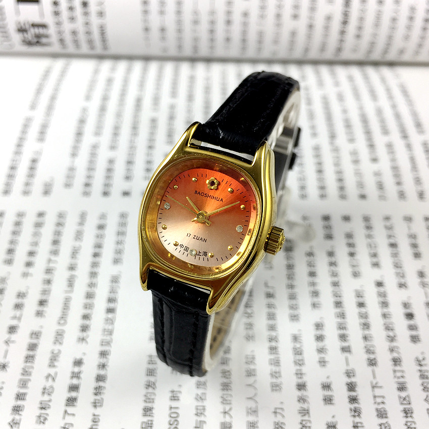 Shanghai Watches Two Factories Jewel Flowers Signs Square Orange Noodles Lady Manual Mechanic Watch Diameter 24 mm