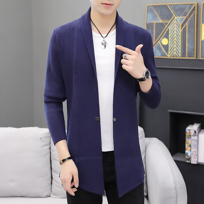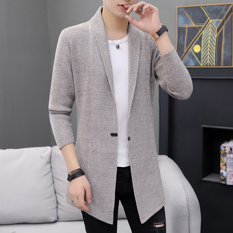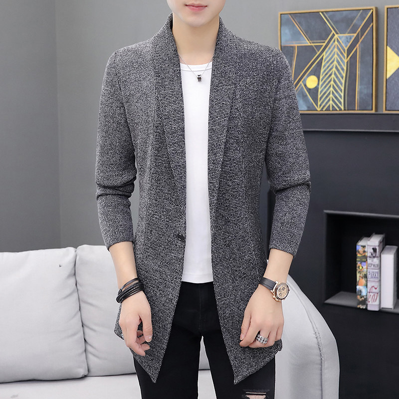 Medium and long version of knitwear cardigan jacket men's spring and autumn thin sweater jacket wear Korean slim trend