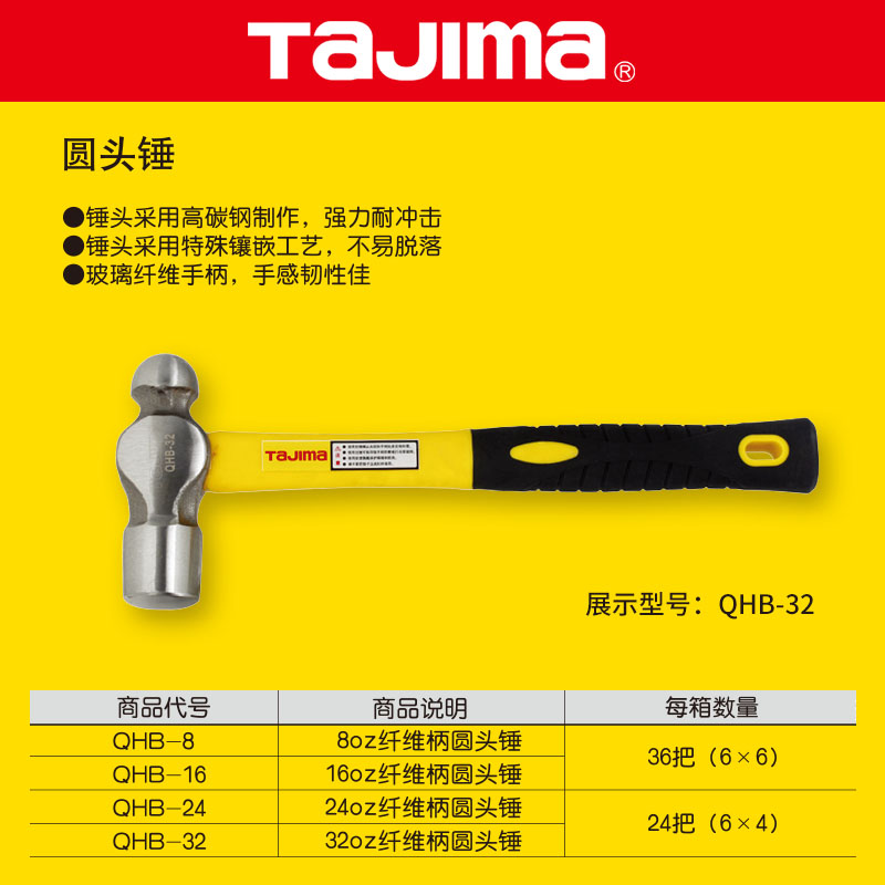 TAJIMA Japan Field Island Round Head Hammer Iron Hammer Milk Head Hammer Electrician Fitter Khammers Soft Comfort Non-slip Rubber Handle