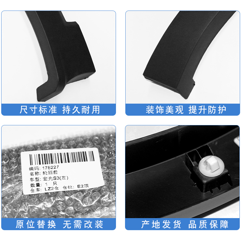 Left front wheel brow (front of the main driver) right front wheel brow (front of the side) left rear wheel eyebrow (behind the main driver) right rear wheel brow (behind the side drive)