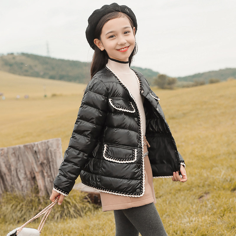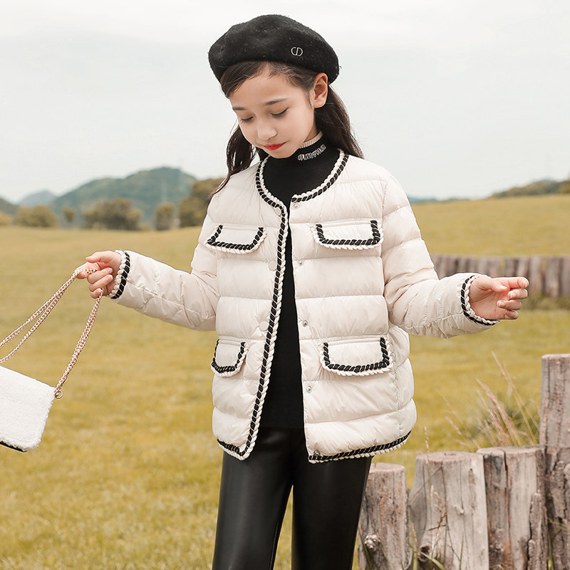 Girl's autumn winter light and thin section down clothes 2022 new children CUHK Girl Scout Winter Short Jacket Tide