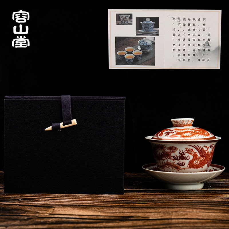 Rongshan Hall Ancient Fat Alum Red Cover Bowl ceramic Gongfu Tea furniture accessories Home Big tea Tea Bowl Imitation Ancient Firewood Burning Tea Bowl-Taobao