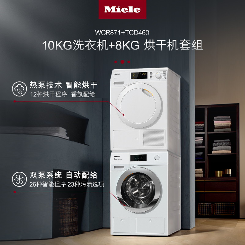 Miele imported drum washing machine WCR871 heat pump dryer TCD460 washing and drying set combination