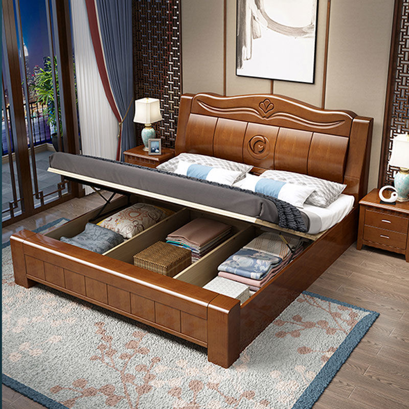 Chinese-style solid wood bed oak bed 1 5 m 1 8 m 2 m double bed modern minimalist bedroom wedding bed high box storage