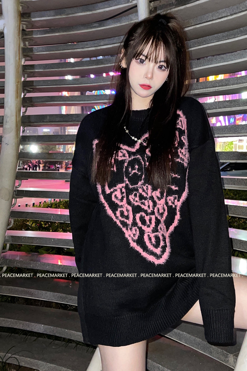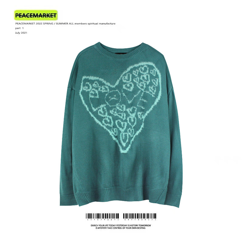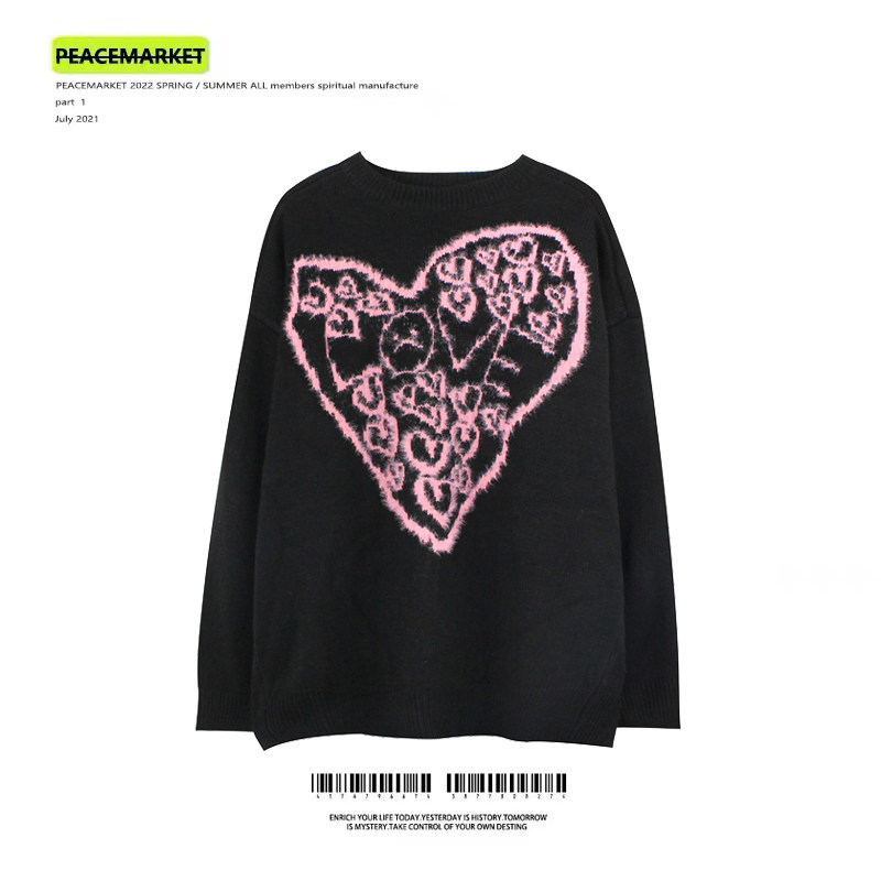 PEACEMARKET dark flocking sweater men and women oversize loose and lazy wind trend knitted sweater retro