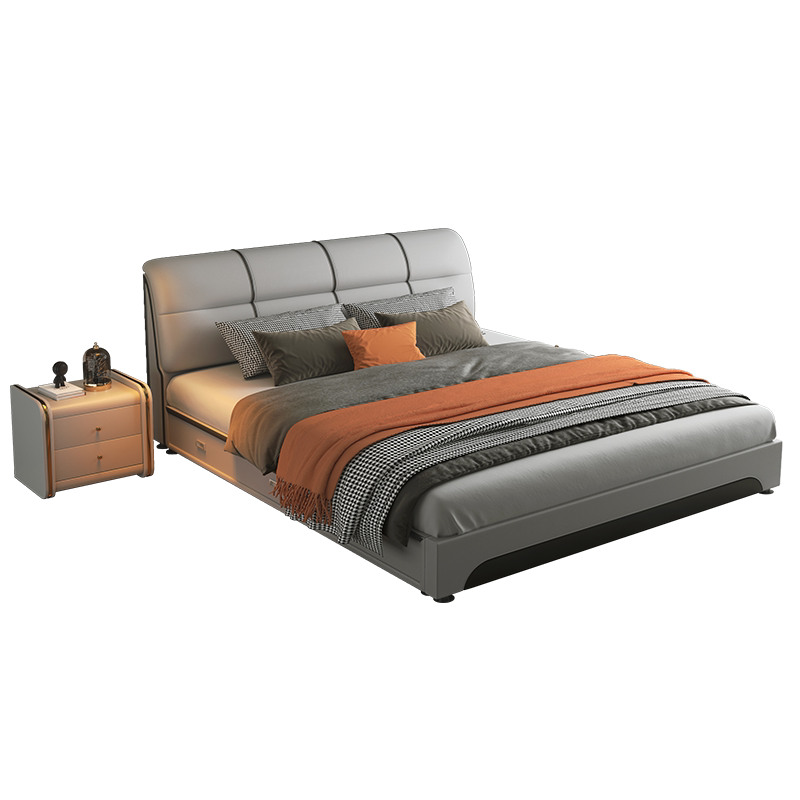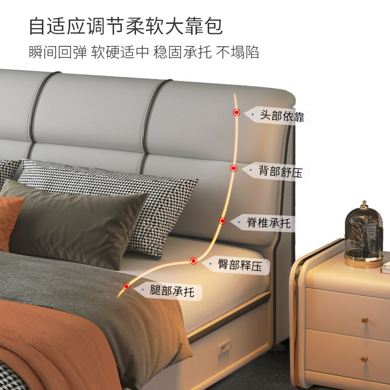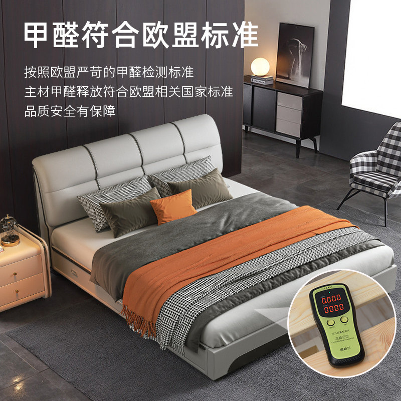 Leather bed 18m modern minimalist double master bedroom tatami bed Nordic 15m wedding bed small apartment soft bed