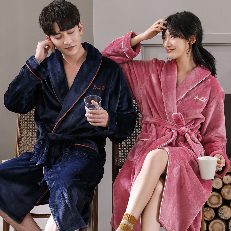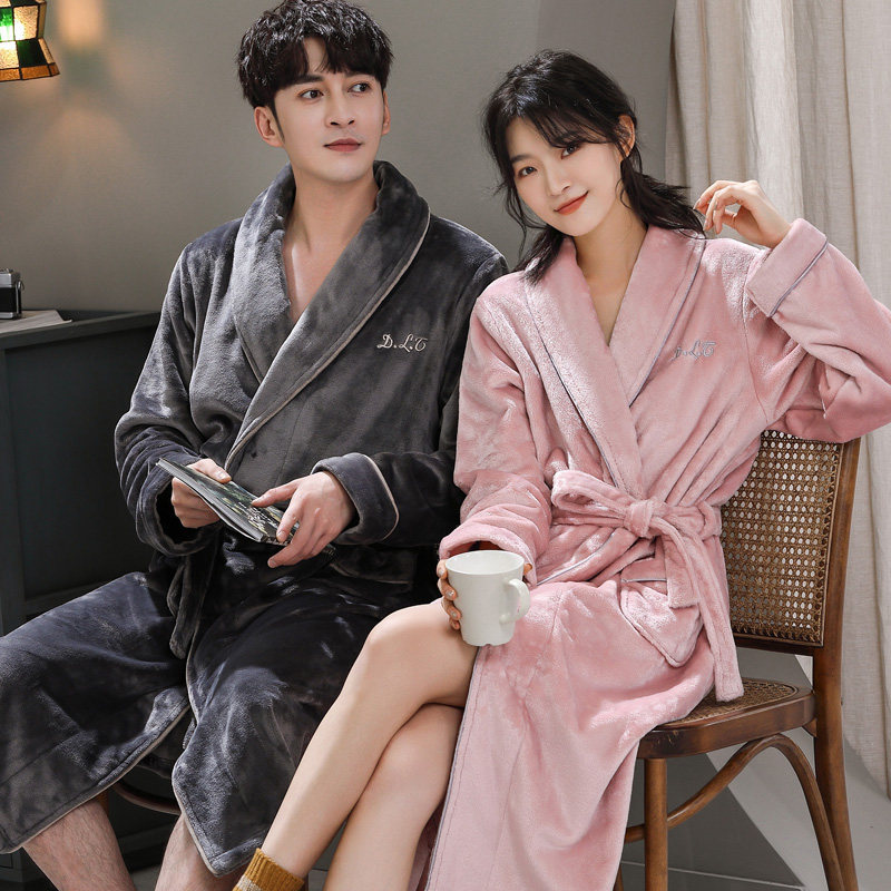 Sleeping Robe Men's Autumn Winter Coral Suede Lovers Pyjamas Dressing Thickened Flannel Suede Bathrobe Woman's long version of the morning gown home