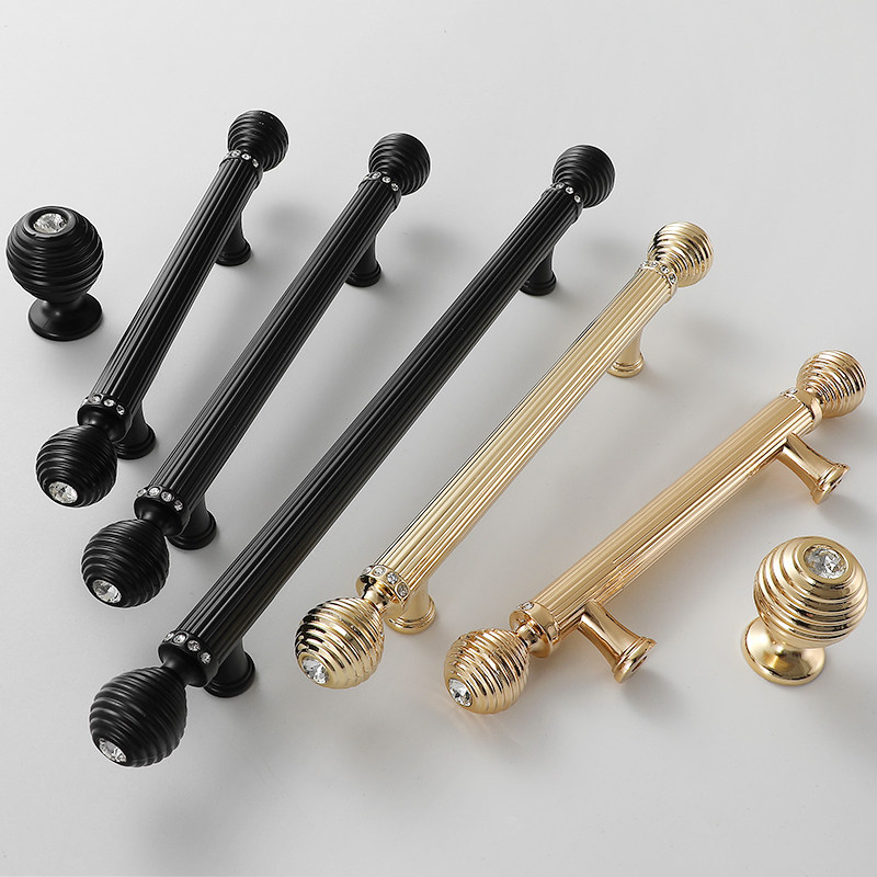 High-end light luxury golden cabinet handle Opie single crystal diamond inlaid wardrobe cabinet drawer solid door handle hole