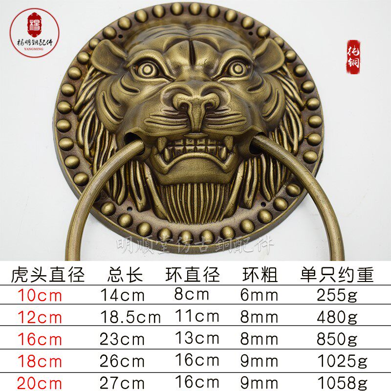 Imitation middle wood gold Chinese handle door is semi-circular tiger head pull ring ancient bronze handle solid wood door copper animal face handle
