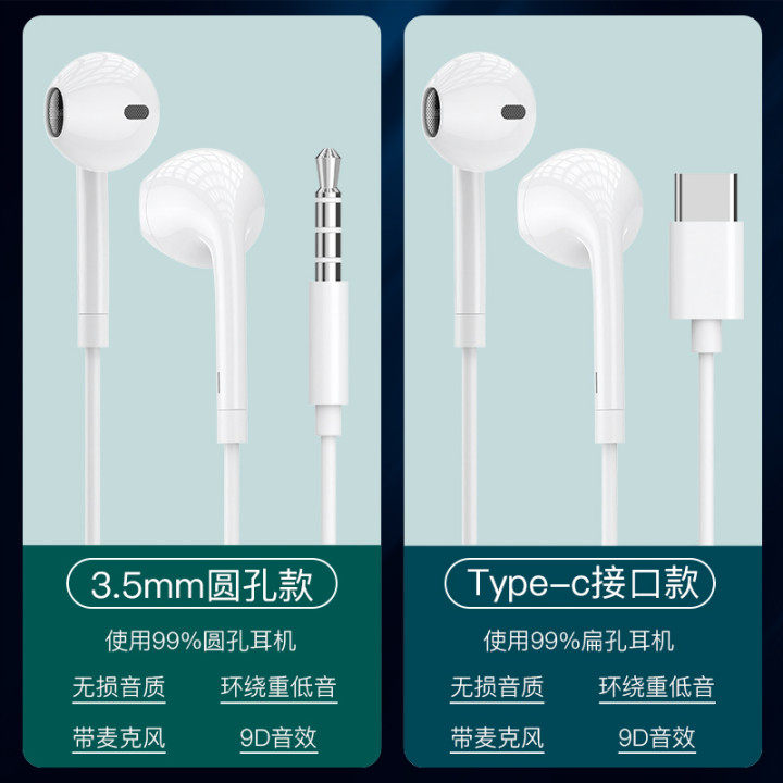 Original set headphones wired in ear style high sound quality applicable Huawei typec interface vigo Xiaomi oppo mobile phone computer universal female noise reduction round hole K song game wire control original earplug track
