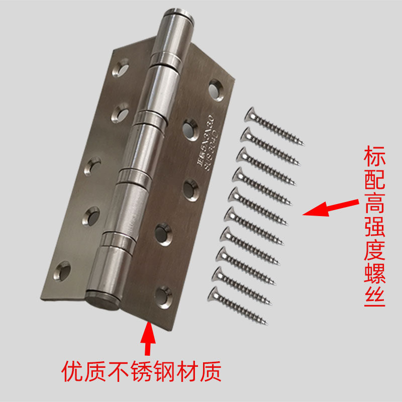 Steel door casement hinge 304 stainless wood door hinge loose-leaf door folding mute hinge plus bearing shaft thickness 4 inches 5