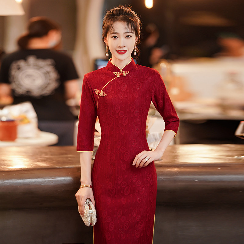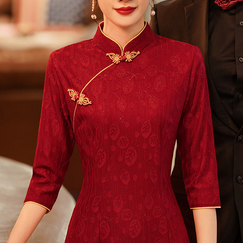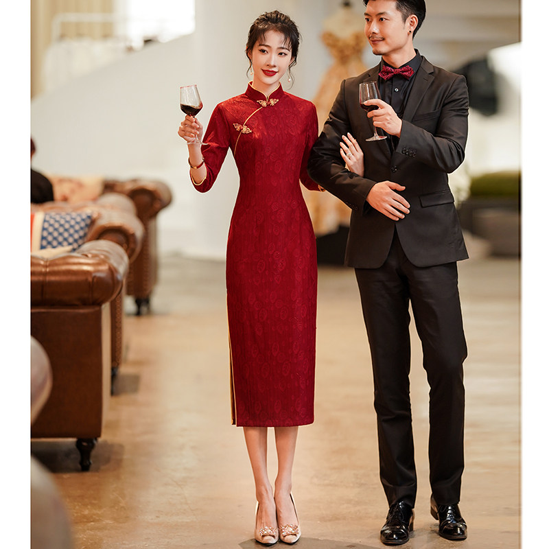 Cheongsam Toast Dress Bride Red Chinese Wedding Dress Engagement Dress Feminine Long Sleeve Young Autumn