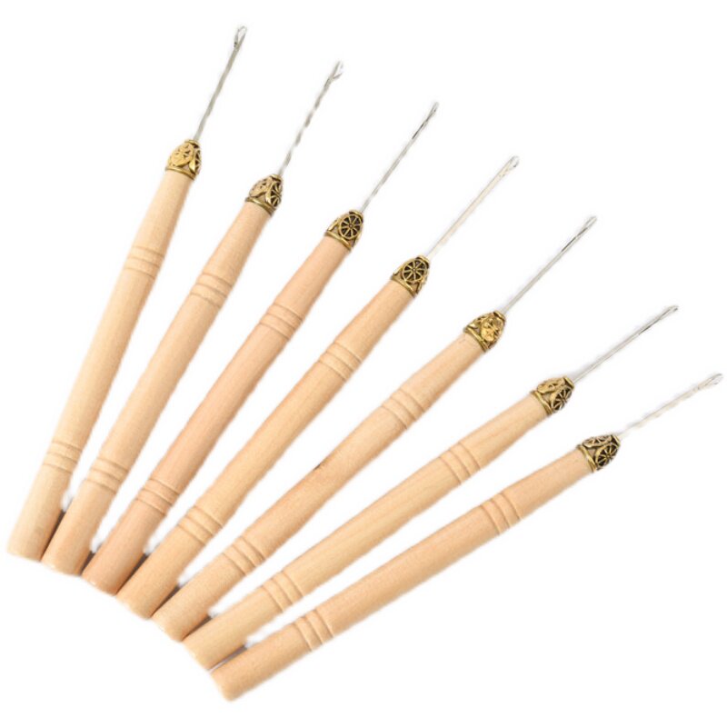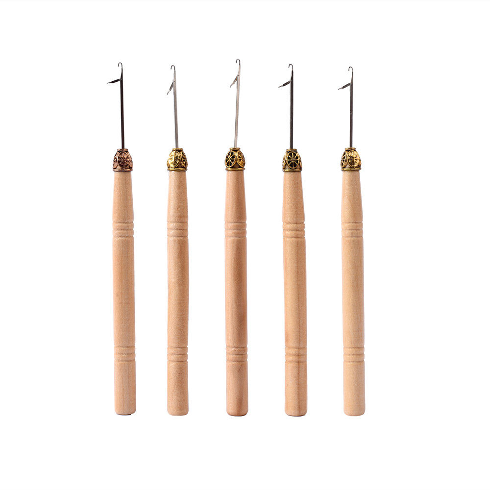 Pick up special wood handle crochet hook needle with tongue wig to pick up the needle feather pick up tool