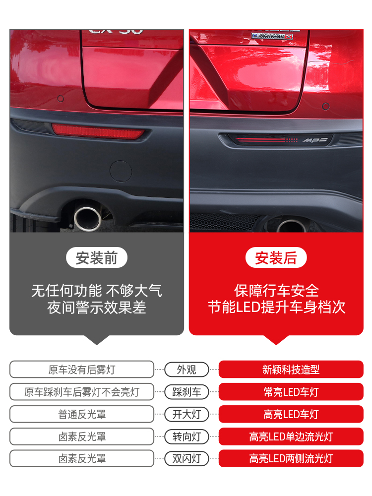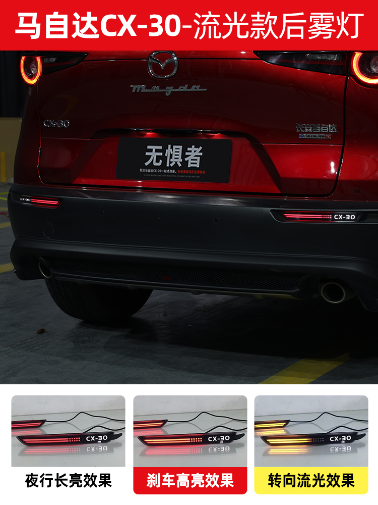 Suitable for MazdaCX30 rear fog light New CX-30 retrofitted smoked black LED rear lever light flow light to tail light