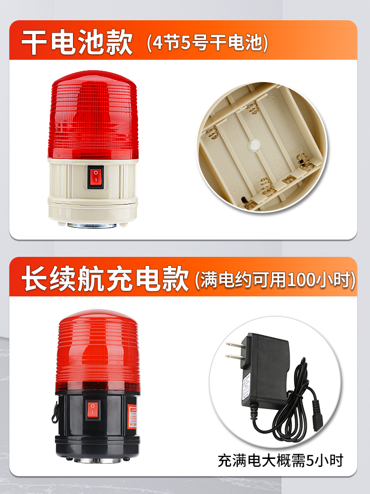 Dry battery flash warning light strobe magnetic absorption LED alarm light flash signal light rechargeable sound and light alarm