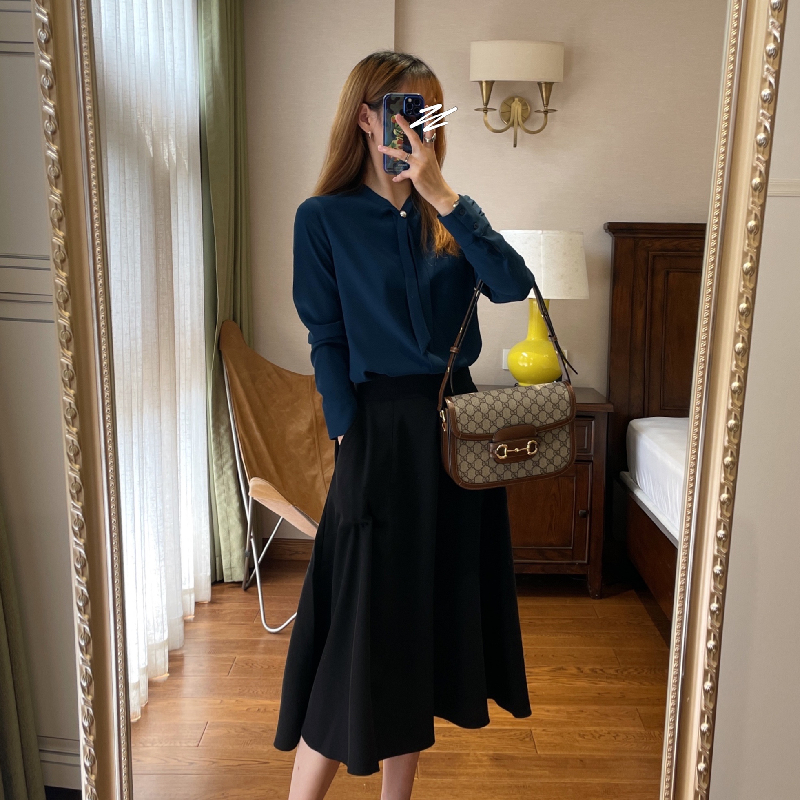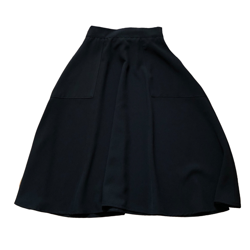 Upgraded version out of Japanese pocket elastic waist in long version retro style high waist Black half body skirt Skirt Skirt
