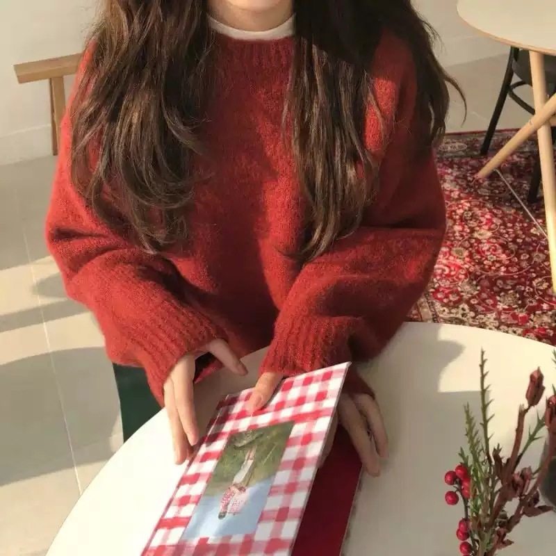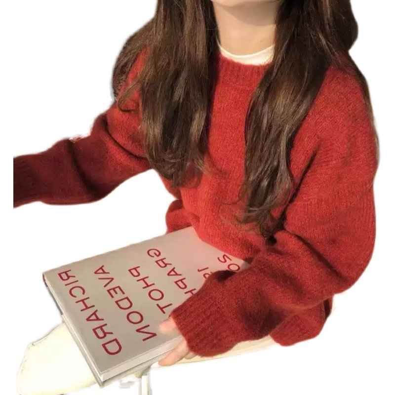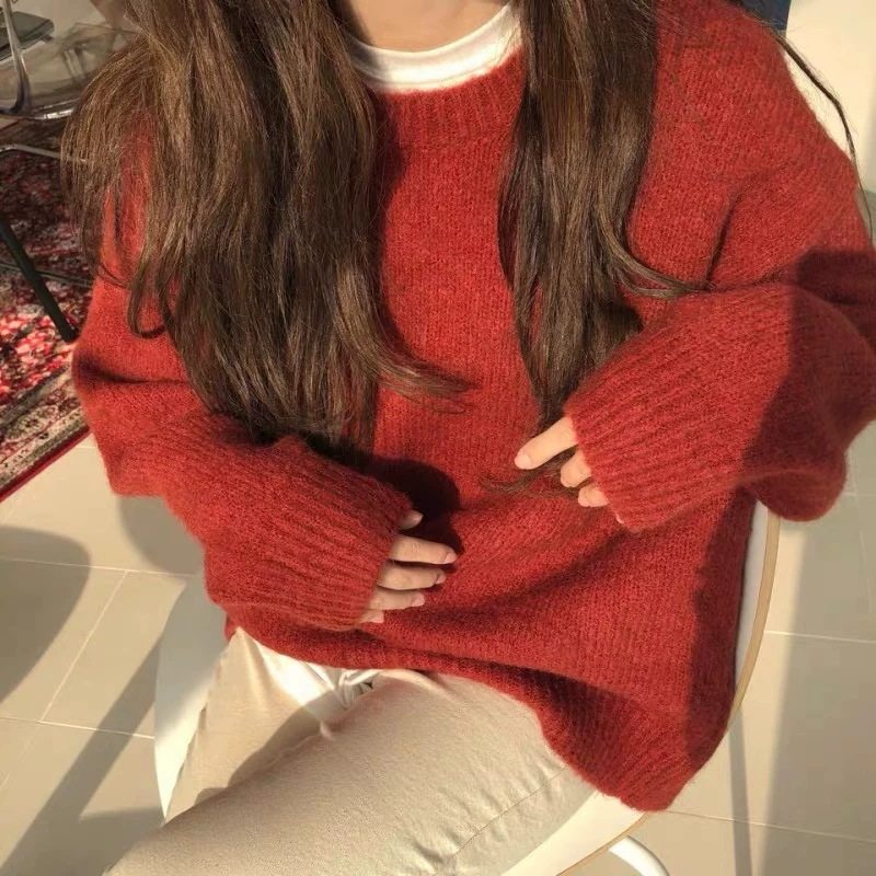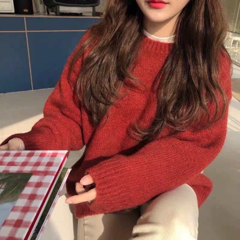 Lazy style 2021 autumn and winter new big red loose knitted sweater outside wearing big cherry mid-length red sweater women