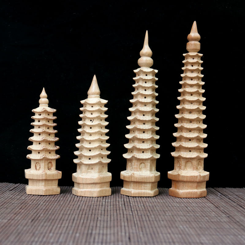 Authentic natural peach wood Wenchang Tower wood carving wood seven-story nine-story 13-story home office desk Feng Shui decoration