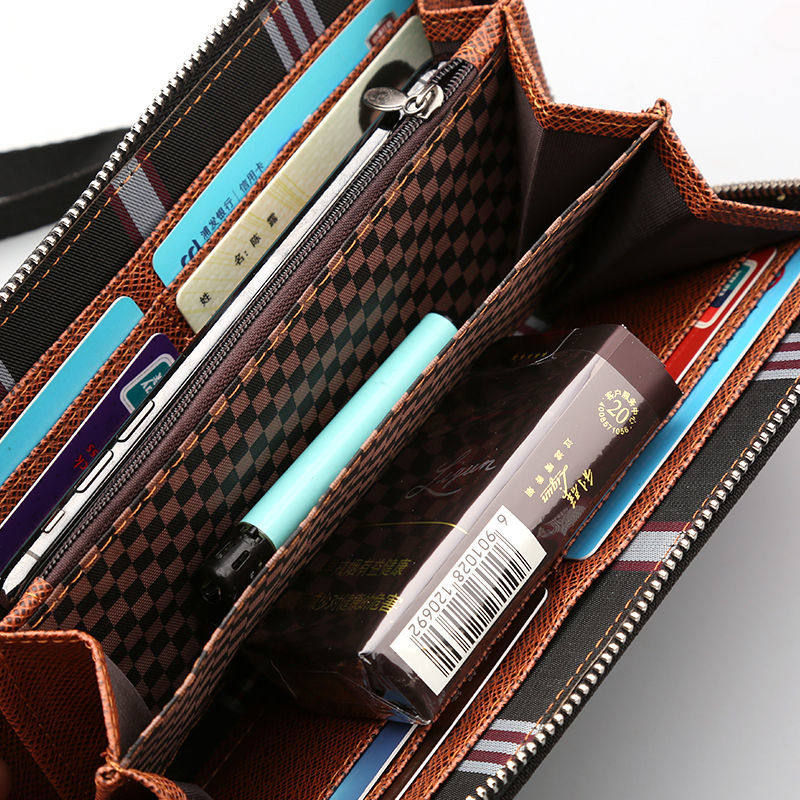 2021 new men's canvas handbag long version can put mobile phone large-capacity handbag student Korean mobile phone wallet