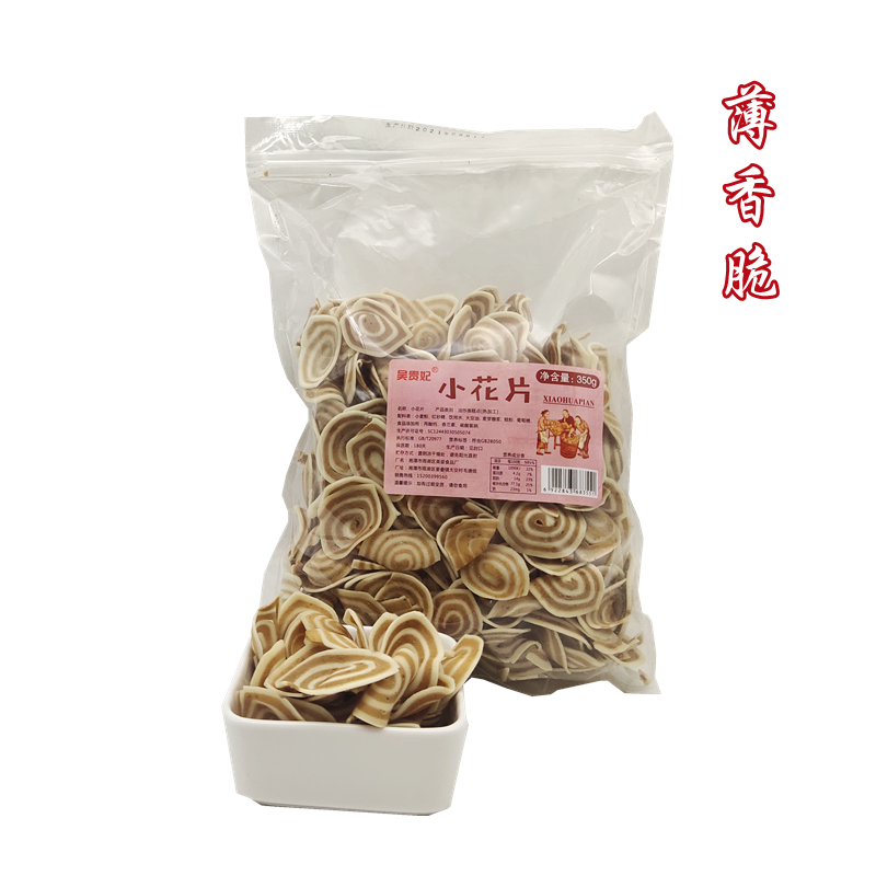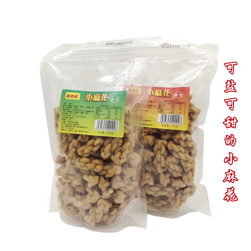Small flower sheet 1 bag 300g thin and crisp when it tastes cat ear crisp 1 bag 310 gr fragrant crisp traditional technique small twist (salty) 1 bag 370 gr small hemp flower (sweet) 1 bag 37